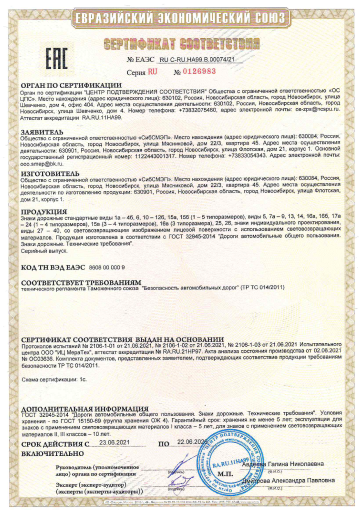 СЕРТИФИКАТ СООТВЕТСТВИЯ